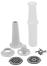 Аксессуары в комплекте 2 перфорированных диска для фарша, загрузочный лоток, насадка для кеббе, насадка для приготовления колбас, толкатель